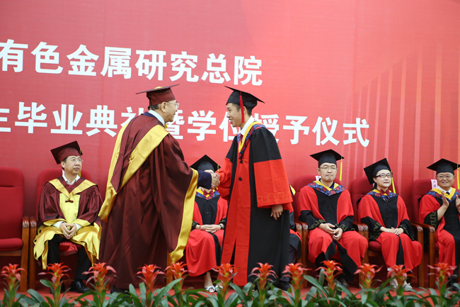 伴隨(sui)著激昂的(de)(de)樂曲(qu),學(xue)(xue)(xue)(xue)(xue)位(wei)評(ping)(ping)(ping)定(ding)委員(yuan)(yuan)會(hui)委員(yuan)(yuan)依次走上主席臺,畢業(ye)典禮(li)拉開(kai)序幕(mu)。熊柏(bo)青首先(xian)宣讀了學(xue)(xue)(xue)(xue)(xue)位(wei)評(ping)(ping)(ping)定(ding)委員(yuan)(yuan)會(hui)授予高彤宇等(deng)18名(ming)同(tong)學(xue)(xue)(xue)(xue)(xue)博(bo)士(shi)(shi)學(xue)(xue)(xue)(xue)(xue)位(wei)、柯(ke)靈升等(deng)49名(ming)同(tong)學(xue)(xue)(xue)(xue)(xue)碩(shuo)士(shi)(shi)學(xue)(xue)(xue)(xue)(xue)位(wei)的(de)(de)決定(ding)。有研總(zong)院(yuan)名(ming)譽院(yuan)長(chang)(chang)(chang)、學(xue)(xue)(xue)(xue)(xue)位(wei)評(ping)(ping)(ping)定(ding)委員(yuan)(yuan)會(hui)名(ming)譽主席屠海(hai)令院(yuan)士(shi)(shi),有研總(zong)院(yuan)院(yuan)長(chang)(chang)(chang)、學(xue)(xue)(xue)(xue)(xue)位(wei)評(ping)(ping)(ping)定(ding)委員(yuan)(yuan)會(hui)主席趙曉晨(chen)分別為博(bo)士(shi)(shi)畢業(ye)生(sheng)、碩(shuo)士(shi)(shi)畢業(ye)生(sheng)逐一扶正(zheng)流蘇并頒(ban)(ban)發學(xue)(xue)(xue)(xue)(xue)位(wei)證書(shu)。屠海(hai)令為獲優秀(xiu)博(bo)士(shi)(shi)學(xue)(xue)(xue)(xue)(xue)位(wei)論文(wen)、優秀(xiu)碩(shuo)士(shi)(shi)學(xue)(xue)(xue)(xue)(xue)位(wei)論文(wen)的(de)(de)同(tong)學(xue)(xue)(xue)(xue)(xue)及導師(shi)頒(ban)(ban)獎(jiang),趙曉晨(chen)為獲一、二、三等(deng)院(yuan)長(chang)(chang)(chang)獎(jiang)學(xue)(xue)(xue)(xue)(xue)金的(de)(de)同(tong)學(xue)(xue)(xue)(xue)(xue)頒(ban)(ban)獎(jiang)。
