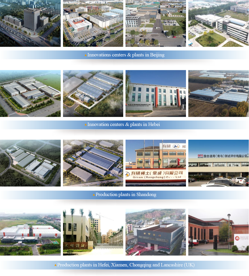 GRINM Group, headquartered in Beijing, currently operates innovation centers, high-tech companies and services companies with R&D and production bases in Beijing, Hebei, Shandong, Shanghai, Anhui, Chongqing, Fujian as well as in Lancashire, UK and Western Ontario, Canada.