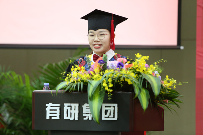 博(bo)士學位獲得者高彤(tong)宇代(dai)表(biao)(biao)畢(bi)業(ye)生發言(yan),她分(fen)享了(le)在(zai)有(you)研(yan)總院(yuan)的(de)(de)成(cheng)長(chang)經歷,代(dai)表(biao)(biao)畢(bi)業(ye)生對有(you)研(yan)總院(yuan)的(de)(de)悉(xi)心培養表(biao)(biao)達了(le)感(gan)謝。她代(dai)表(biao)(biao)畢(bi)業(ye)生莊嚴承諾(nuo),將秉(bing)承有(you)研(yan)人(ren)胸懷國家的(de)(de)初心和艱苦奮(fen)斗的(de)(de)品質,在(zai)新(xin)的(de)(de)人(ren)生階(jie)段,用(yong)行動和奮(fen)斗書寫(xie)無愧于(yu)有(you)研(yan)人(ren)的(de)(de)華美篇章。