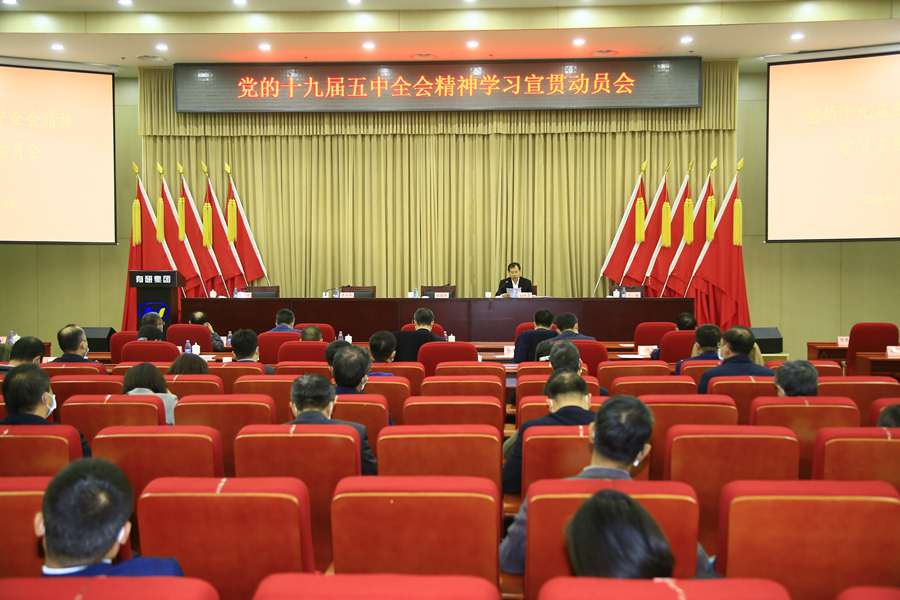 會(hui)(hui)(hui)議認為,黨(dang)的(de)(de)十九(jiu)屆五(wu)中全會(hui)(hui)(hui)是在即(ji)將實現(xian)(xian)第(di)(di)一(yi)個百(bai)(bai)年(nian)奮斗(dou)(dou)目標(biao)、開(kai)啟全面(mian)建設社會(hui)(hui)(hui)主義現(xian)(xian)代化(hua)國家新(xin)征程(cheng)的(de)(de)時(shi)刻(ke)召(zhao)開(kai)的(de)(de)一(yi)次具有(you)全局性(xing)、歷(li)史性(xing)意義的(de)(de)重要(yao)會(hui)(hui)(hui)議。全會(hui)(hui)(hui)審議通(tong)過的(de)(de)《中共中央關于制定(ding)國民經濟(ji)(ji)和社會(hui)(hui)(hui)發展第(di)(di)十四個五(wu)年(nian)規劃和二〇三五(wu)年(nian)遠景目標(biao)的(de)(de)建議》,是開(kai)啟全面(mian)建設社會(hui)(hui)(hui)主義現(xian)(xian)代化(hua)國家新(xin)征程(cheng),向(xiang)(xiang)(xiang)第(di)(di)二個百(bai)(bai)年(nian)奮斗(dou)(dou)目標(biao)進軍的(de)(de)綱領性(xing)文件(jian),是今(jin)后五(wu)年(nian)乃至更長時(shi)期(qi)我(wo)國經濟(ji)(ji)社會(hui)(hui)(hui)發展的(de)(de)行動(dong)指南。習近平總(zong)書記在全會(hui)(hui)(hui)上的(de)(de)重要(yao)講話,深刻(ke)闡明(ming)了新(xin)形勢下制定(ding)好“十四五(wu)”規劃的(de)(de)重大(da)意義,深刻(ke)闡述了一(yi)系(xi)列(lie)方向(xiang)(xiang)(xiang)性(xing)、根本性(xing)、全局性(xing)重大(da)問題(ti),對貫徹落(luo)實全會(hui)(hui)(hui)精神作出了全面(mian)部署、提(ti)出了明(ming)確要(yao)求(qiu),為有(you)研(yan)集團在“十四五(wu)”時(shi)期(qi)做好各項工作指明(ming)了前(qian)進方向(xiang)(xiang)(xiang),提(ti)供了根本遵循。