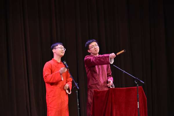 晚(wan)會在活(huo)力(li)四射的(de)(de)開場(chang)舞(wu)《你要跳舞(wu)嗎(ma)》中拉開了帷(wei)幕。歌曲《寫給(gei)黃(huang)淮》渾厚飽滿、富(fu)有感情;相聲(sheng)《最(zui)美室友》展現了同學間的(de)(de)和(he)睦友愛;日文(wen)歌曲《未來へ》感情飽滿,治(zhi)愈力(li)滿滿;樂器演奏《小手拉大手》中,口(kou)琴與尤克里(li)里(li)的(de)(de)配(pei)合(he)令人耳(er)目一新;兩名博(bo)士帶來的(de)(de)歌曲串燒以高(gao)(gao)超的(de)(de)唱(chang)(chang)功(gong)令人嘆為觀(guan)止,鼓掌(zhang)稱好(hao);小品《我(wo)的(de)(de)研究生(sheng)生(sheng)活(huo)》諷刺(ci)到位(wei),令人共鳴(ming);舞(wu)蹈(dao)《How You Like That》舞(wu)姿曼妙,燃爆全(quan)場(chang);吉他彈唱(chang)(chang)《稻香》引(yin)得觀(guan)眾們(men)輕聲(sheng)合(he)唱(chang)(chang);脫口(kou)秀《嘮嘮東北話》幽默詼諧,氣氛活(huo)潑;吉他彈唱(chang)(chang)《安(an)和(he)橋(qiao)》空靈悅耳(er),令人沉(chen)醉;紀委書記曹泊宇深情演唱(chang)(chang)《壯志(zhi)在我(wo)胸》,振奮人心,激(ji)勵青年人志(zhi)存高(gao)(gao)遠,腳踏(ta)實(shi)地;晚(wan)會結尾,各位(wei)領導老師(shi)與同學們(men)齊唱(chang)(chang)《我(wo)和(he)我(wo)的(de)(de)祖國》,大家情緒(xu)高(gao)(gao)漲,寄(ji)情與歌。更(geng)有緊張刺(ci)激(ji)的(de)(de)小游戲環節和(he)抽獎環節使晚(wan)會增添了更(geng)多精彩瞬間。