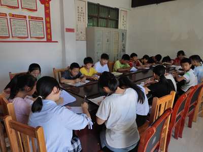 5日下午,支教活動開始報(bao)(bao)名。雖然我們做了充足的(de)準(zhun)備,但還是(shi)(shi)被茶山村(cun)民的(de)熱情所淹沒。短短兩個小時,便有70余名孩子在家長(chang)的(de)陪同下前(qian)來(lai)報(bao)(bao)名。從(cong)小學一(yi)年級到高中(zhong)三年級,年齡(ling)分(fen)布廣,這為我們的(de)工(gong)作(zuo)帶來(lai)了不(bu)小的(de)挑戰。我們每個人都(dou)忙的(de)不(bu)可(ke)開交(jiao),身體是(shi)(shi)累的(de),但當看到那一(yi)張張天真而又羞澀的(de)臉(lian),心里卻是(shi)(shi)暖的(de)。