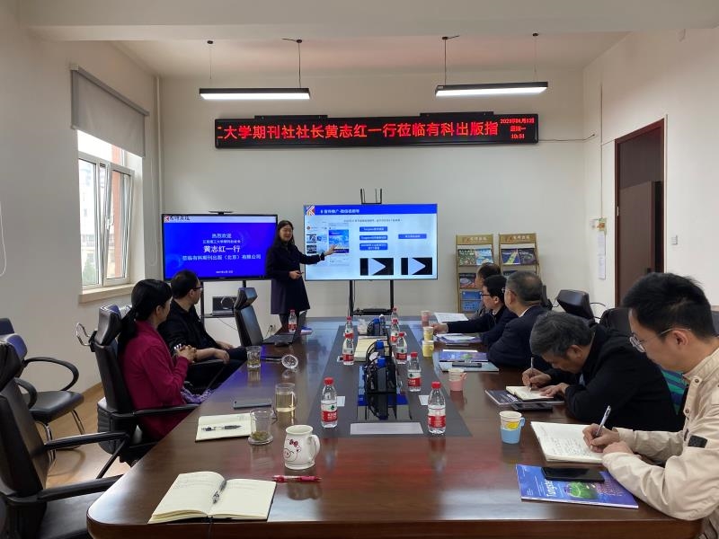 2021年4月12日,江(jiang)西理工(gong)大學(xue)期刊(kan)社社長黃志紅(hong)一行到訪有(you)科(ke)出(chu)版。有(you)科(ke)出(chu)版總經理錢(qian)九紅(hong)、副總經理李蒙及鎢科(ke)技期刊(kan)部相關(guan)人員陪(pei)同(tong)座談交流。
