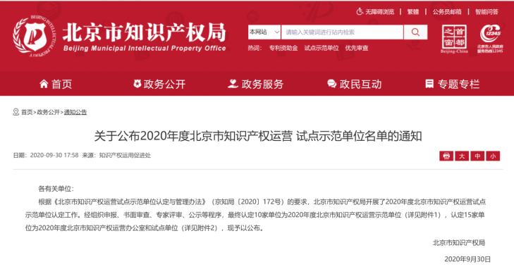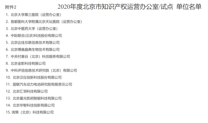 近(jin)日,國(guo)聯研究院(yuan)獲批(pi)(pi)2020年度(du)北(bei)京市知(zhi)(zhi)(zhi)識產(chan)權運營試(shi)點(dian)單(dan)位(wei)。據悉(xi),北(bei)京市知(zhi)(zhi)(zhi)識產(chan)權局(ju)共認定2020年度(du)北(bei)京市知(zhi)(zhi)(zhi)識產(chan)權運營辦公室和(he)試(shi)點(dian)單(dan)位(wei)15家。此前,國(guo)聯研究院(yuan)曾(ceng)獲批(pi)(pi)國(guo)家知(zhi)(zhi)(zhi)識產(chan)權優勢單(dan)位(wei)以及北(bei)京市知(zhi)(zhi)(zhi)識產(chan)權示(shi)范單(dan)位(wei)。