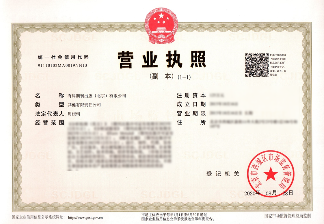 經中(zhong)(zhong)宣部(bu)傳媒監管局(國家新聞出(chu)版署)、中(zhong)(zhong)國科協(xie)審批同意,中(zhong)(zhong)國有(you)(you)色金(jin)屬(shu)學(xue)會、有(you)(you)研(yan)集團兩家股東協(xie)商一(yi)致通(tong)過,有(you)(you)研(yan)博翰(北京(jing))出(chu)版有(you)(you)限公(gong)司于2020年8月28日正式完(wan)成(cheng)工商變更(geng)(geng),更(geng)(geng)名(ming)為(wei)有(you)(you)科期刊(kan)出(chu)版(北京(jing))有(you)(you)限公(gong)司,簡稱“有(you)(you)科出(chu)版”,英文(wen)名(ming)稱“Youke Publishing Co., Ltd.”。旗下《稀有(you)(you)金(jin)屬(shu)》、《稀有(you)(you)金(jin)屬(shu)(英文(wen)版)》、《分(fen)析試驗室(shi)》、《分(fen)析檢測(ce)(英文(wen))》4種期刊(kan)的出(chu)版單位同步變更(geng)(geng)為(wei)有(you)(you)科期刊(kan)出(chu)版(北京(jing))有(you)(you)限公(gong)司。