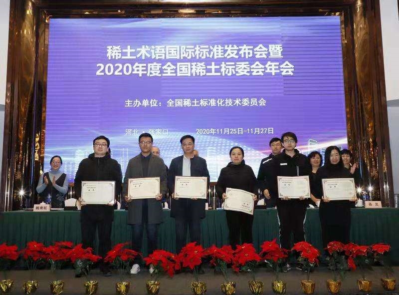 會議(yi)頒發(fa)了“2020年度稀土(tu)標(biao)委(wei)(wei)會技術(shu)標(biao)準(zhun)優秀(xiu)獎”,并對(dui)“2020年度稀土(tu)標(biao)準(zhun)化(hua)先(xian)進工作(zuo)者”進行(xing)了表彰。有研稀土(tu)及(ji)其子公司樂山有研牽頭制(zhi)定的兩項(xiang)行(xing)業標(biao)準(zhun)《綠色(se)設計(ji)產品評價技術(shu)規范 稀土(tu)火(huo)法冶(ye)煉產品》《鑭鈰金(jin)屬(shu)》均獲(huo)得(de)2020年度稀土(tu)標(biao)委(wei)(wei)會技術(shu)標(biao)準(zhun)獎;趙龍勝(sheng)博(bo)士獲(huo)評2020年度稀土(tu)標(biao)準(zhun)化(hua)先(xian)進工作(zuo)者。