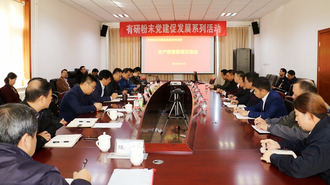10月15日(ri),有(you)(you)研(yan)粉(fen)(fen)末召開生產質量管(guan)理交流會(hui),拉開了有(you)(you)研(yan)粉(fen)(fen)末黨(dang)委(wei)“黨(dang)建促發(fa)展系列活動(dong)”的序幕。公司(si)黨(dang)委(wei)班(ban)子成員(yuan)參(can)會(hui),黨(dang)委(wei)書記、董事長(chang)汪禮(li)敏出(chu)席活動(dong)并講話。公司(si)黨(dang)委(wei)副書記、紀委(wei)書記周慧淵主持會(hui)議。