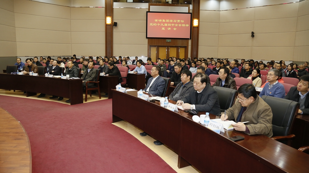 12月14日,有(you)研集團舉辦黨(dang)的(de)十九(jiu)(jiu)屆四(si)中(zhong)全會(hui)精(jing)神宣(xuan)(xuan)講(jiang)會(hui),中(zhong)央宣(xuan)(xuan)講(jiang)團成(cheng)員(yuan)(yuan)、中(zhong)央政策研究(jiu)室原副主(zhu)任、黨(dang)的(de)十九(jiu)(jiu)屆四(si)中(zhong)全會(hui)文(wen)件起草組(zu)成(cheng)員(yuan)(yuan)施芝鴻應邀(yao)作宣(xuan)(xuan)講(jiang)報告。黨(dang)委書(shu)記(ji)、董事長趙曉晨,集團領(ling)導,職能部門負(fu)責人,所(suo)屬(shu)公司(si)黨(dang)組(zu)織委員(yuan)(yuan)、黨(dang)建聯絡員(yuan)(yuan)、通訊員(yuan)(yuan)、團組(zu)織書(shu)記(ji)共200余人在主(zhu)會(hui)場和(he)視頻(pin)分會(hui)場聆聽宣(xuan)(xuan)講(jiang)。總經理熊柏青主(zhu)持會(hui)議。